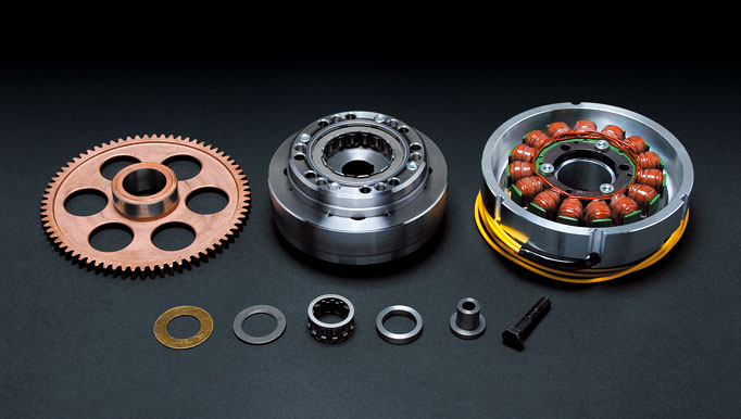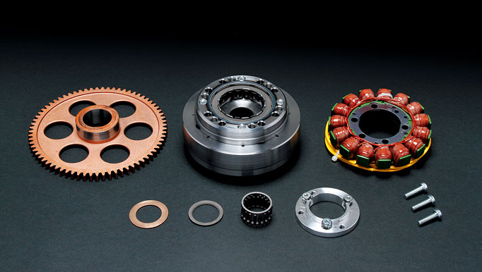 軽量化された新型アウターローター式のジェネレーターユニットを採用。カム式ワンウェイユニットとギヤも含めたKIT。ギヤのクラッチ接触部の径は純正のφ42.2からφ45.7へ大径化。